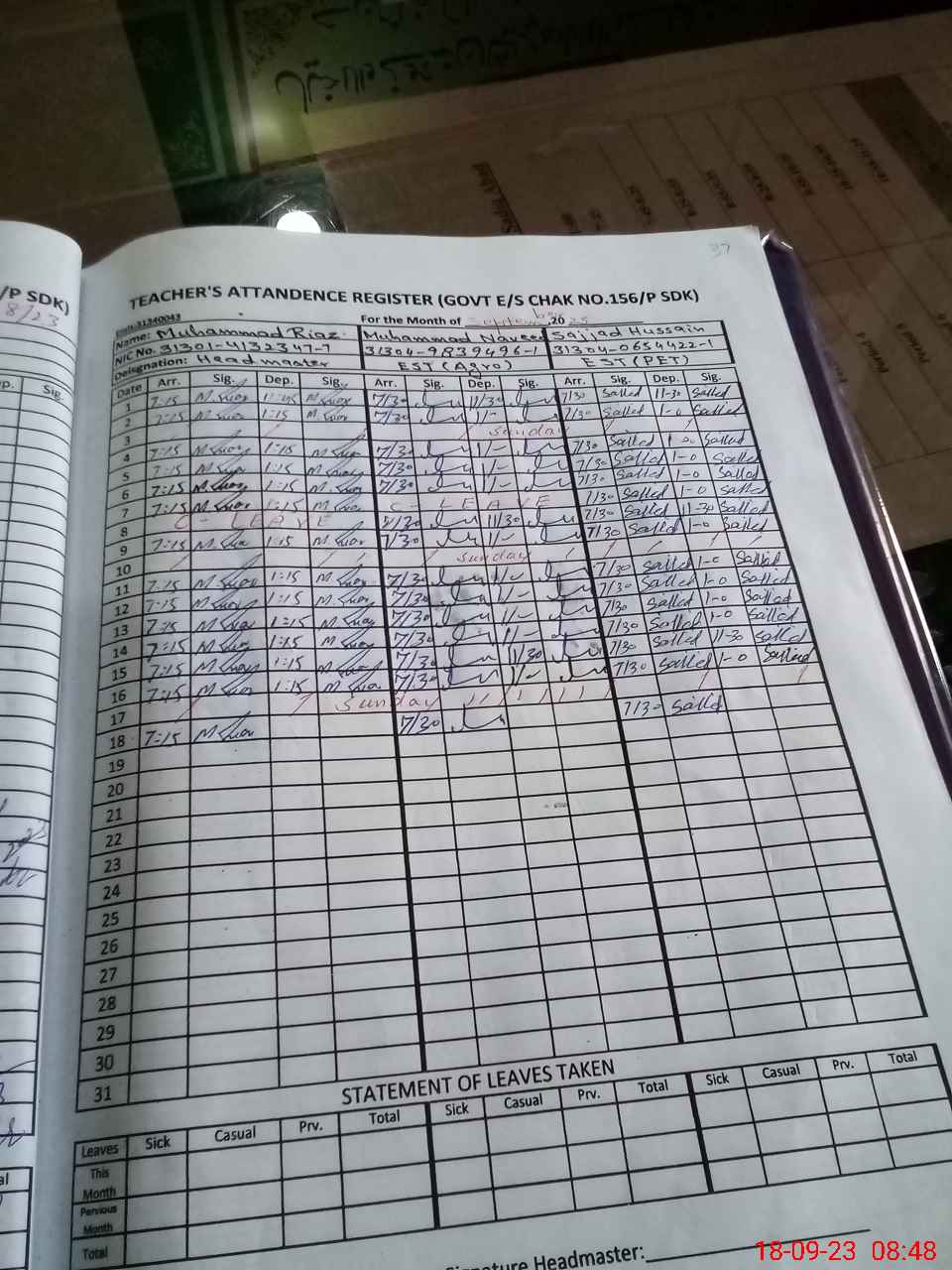 | Name: Mo**** Ri**** Designation: (School Headmaster's/Headmistress's) SST Phone/Cell Number: 03**** |