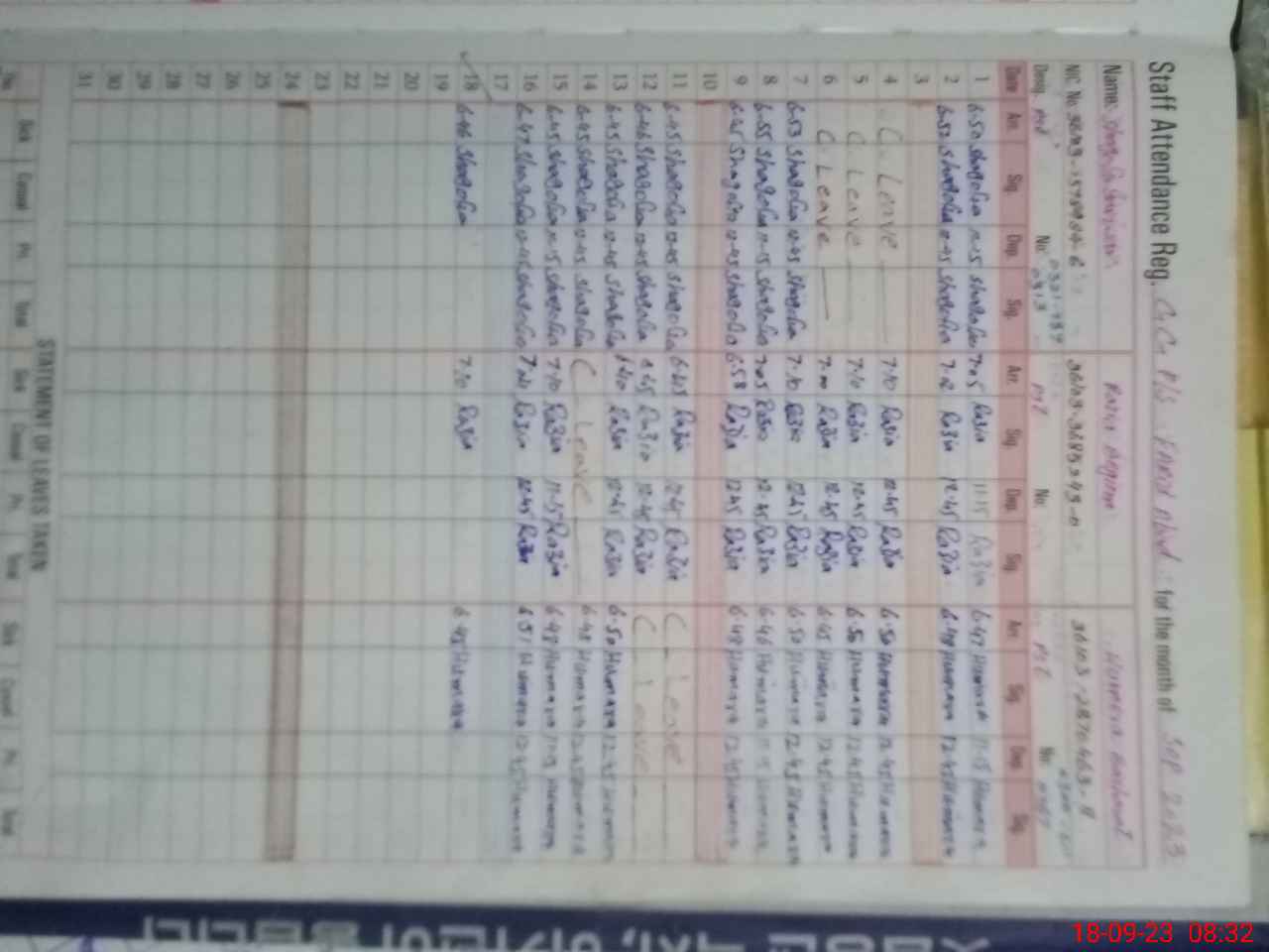 | CNIC | Full Name | Designation | R/C | Absence During Last Calender Month |
