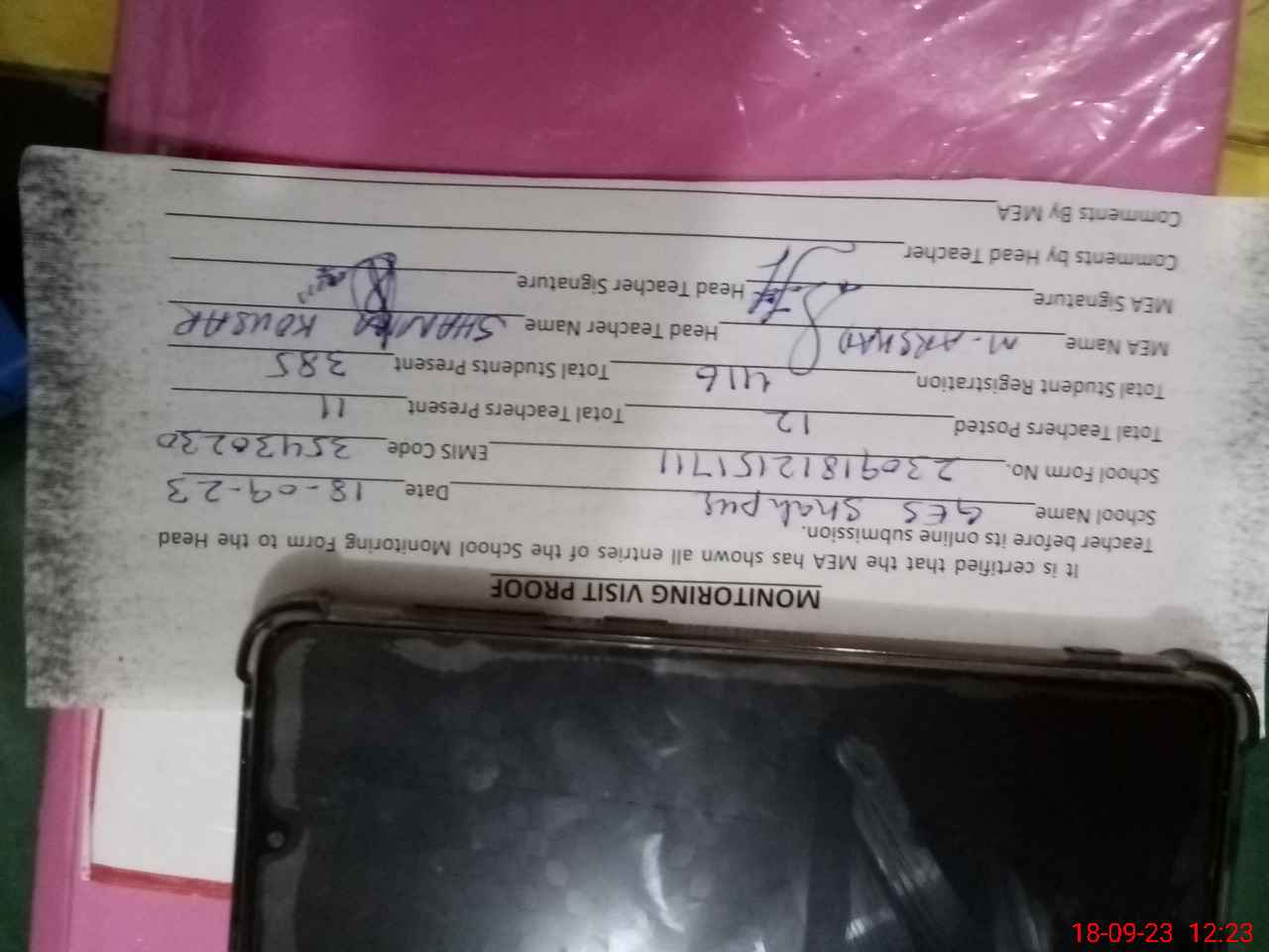 | Attendance Register | Head Teacher | MEA with School | Visit Proof |