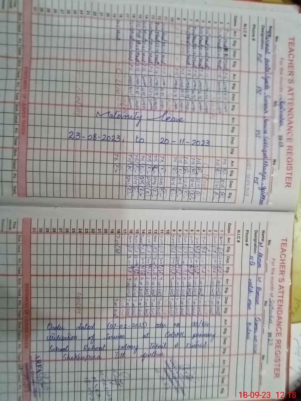 | Name: SH**** KO**** Designation: (School Headmaster's/Headmistress's) SST( General ) Phone/Cell Number: 03**** |