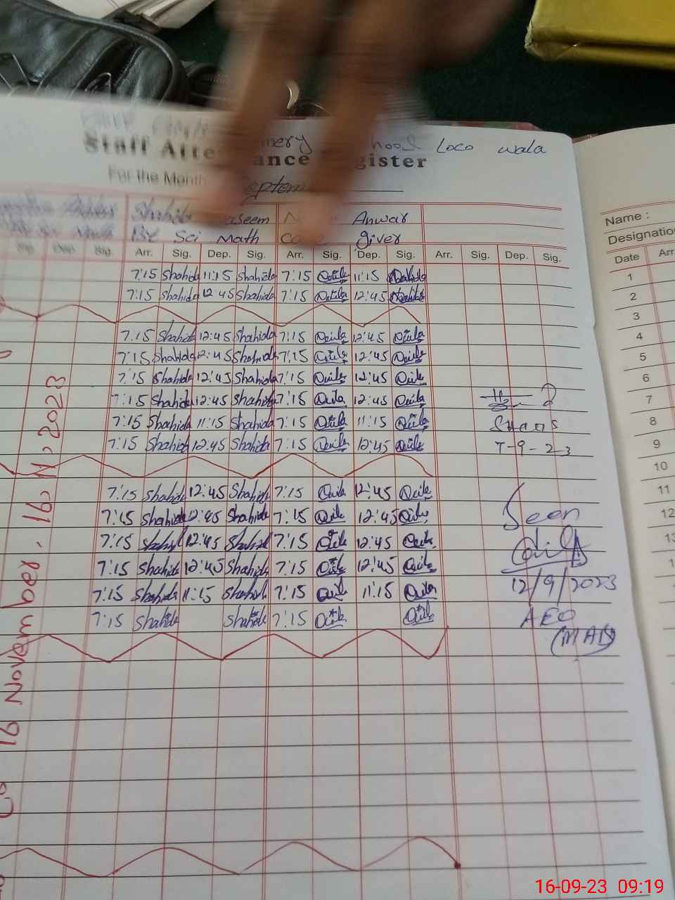 | Monitoring Date: 16-09-2023 | Start Time: 16-09-2023 08:51 AM | End Time: 16-09-2023 09:26 AM | Name of MEA: Ma**** UlHa**** | |