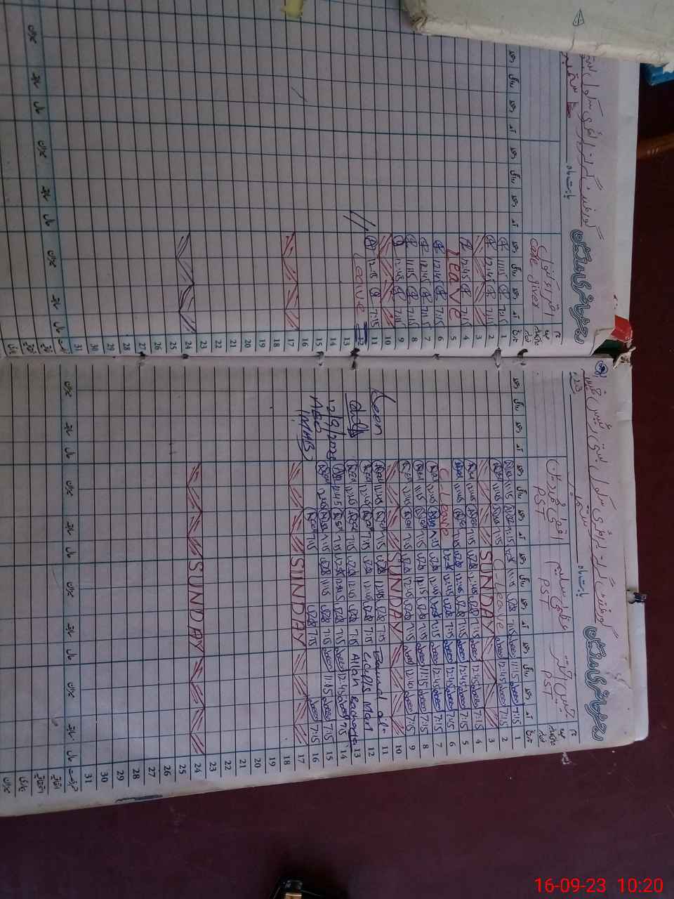 | Leave | Duty | Absent | Maternity | Medical | Ex- Pak |