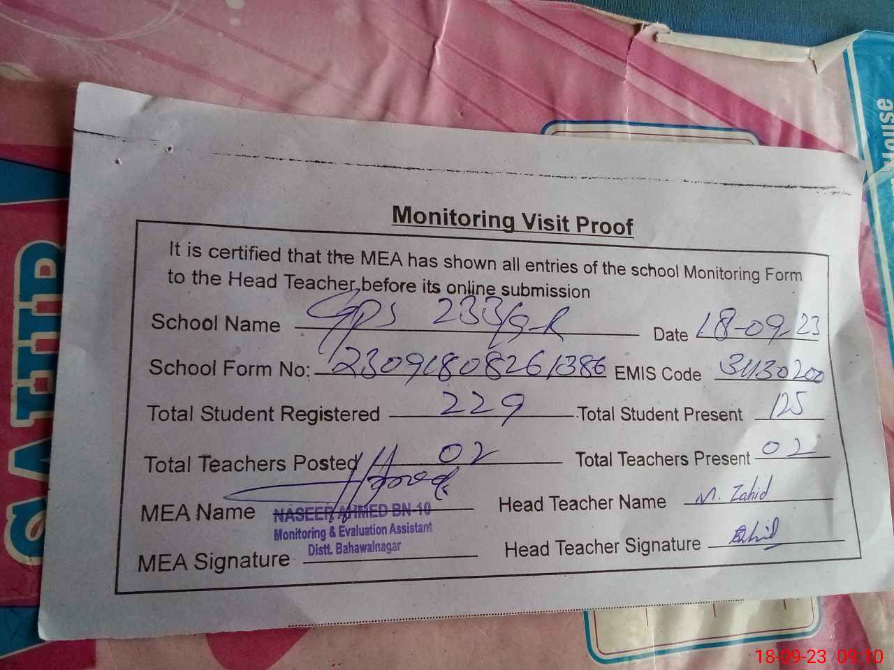 | EMIS Code: 31130200 | Name of School: GPS CHAK 233/9-R | |||
