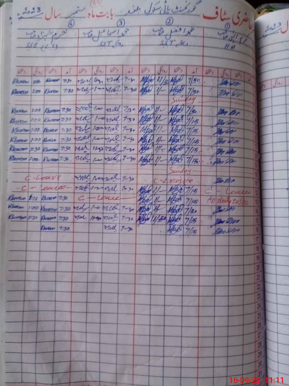 | CNIC | Full Name | Designation | R/C | Absence During Last Calender Month |