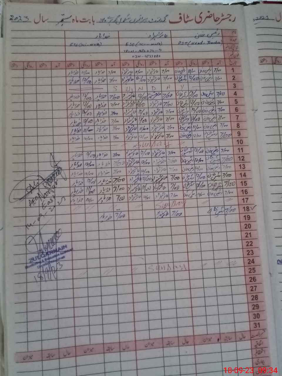 | Name: RA**** KH**** Designation: (School Headmaster's/Headmistress's) PST Phone/Cell Number: 03**** |