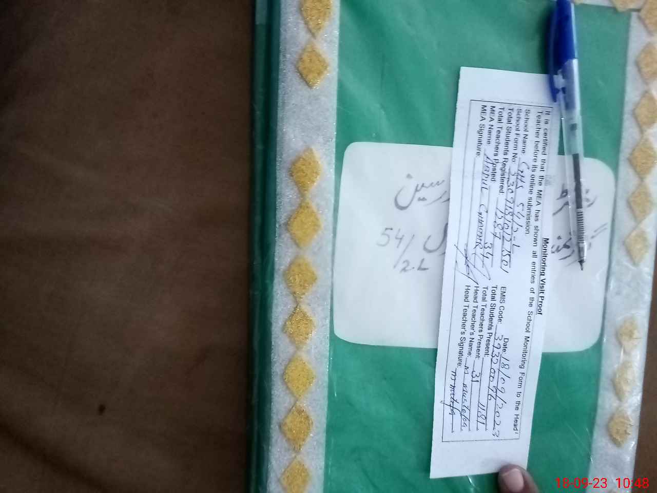 | Attendance Register | Head Teacher | MEA with School | Visit Proof |