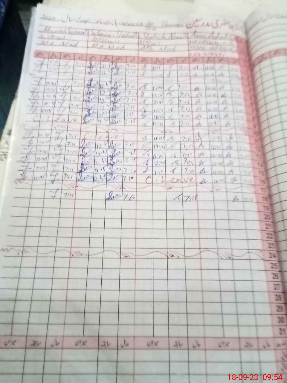 | CNIC | Full Name | Designation | R/C | Absence During Last Calender Month |