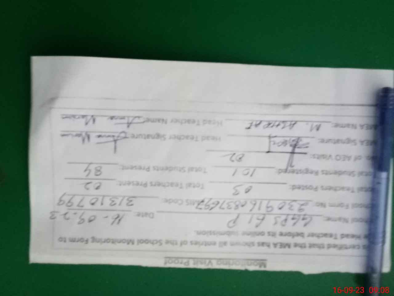| Monitoring Date: 16-09-2023 | Start Time: 16-09-2023 08:37 AM | End Time: 16-09-2023 09:09 AM | Name of MEA: Mu**** As**** KP**** | |