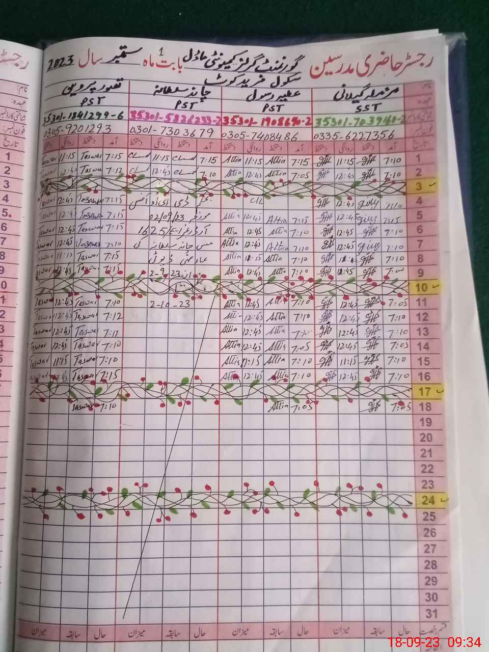 | Name: MU**** GI**** Designation: (School Headmaster's/Headmistress's) S.S.T.(SC) Phone/Cell Number: 03**** |
