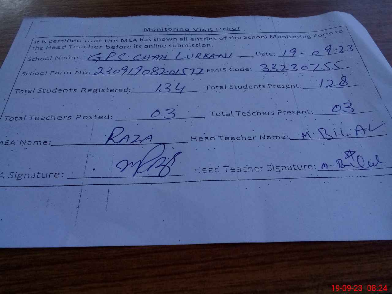 | EMIS Code: 33230755 | Name of School: GPS CHAH LURKANI | |||