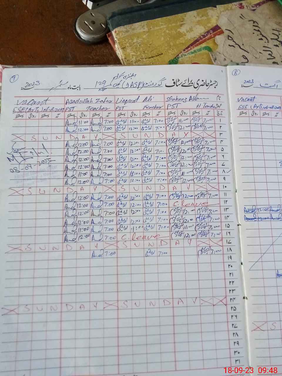 | CNIC | Full Name | Designation | R/C | Absence During Last Calender Month |