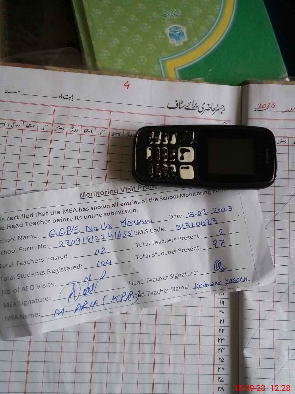 | EMIS Code: 31320623 | Name of School: GGPS NALLA MOUSANI | |||
