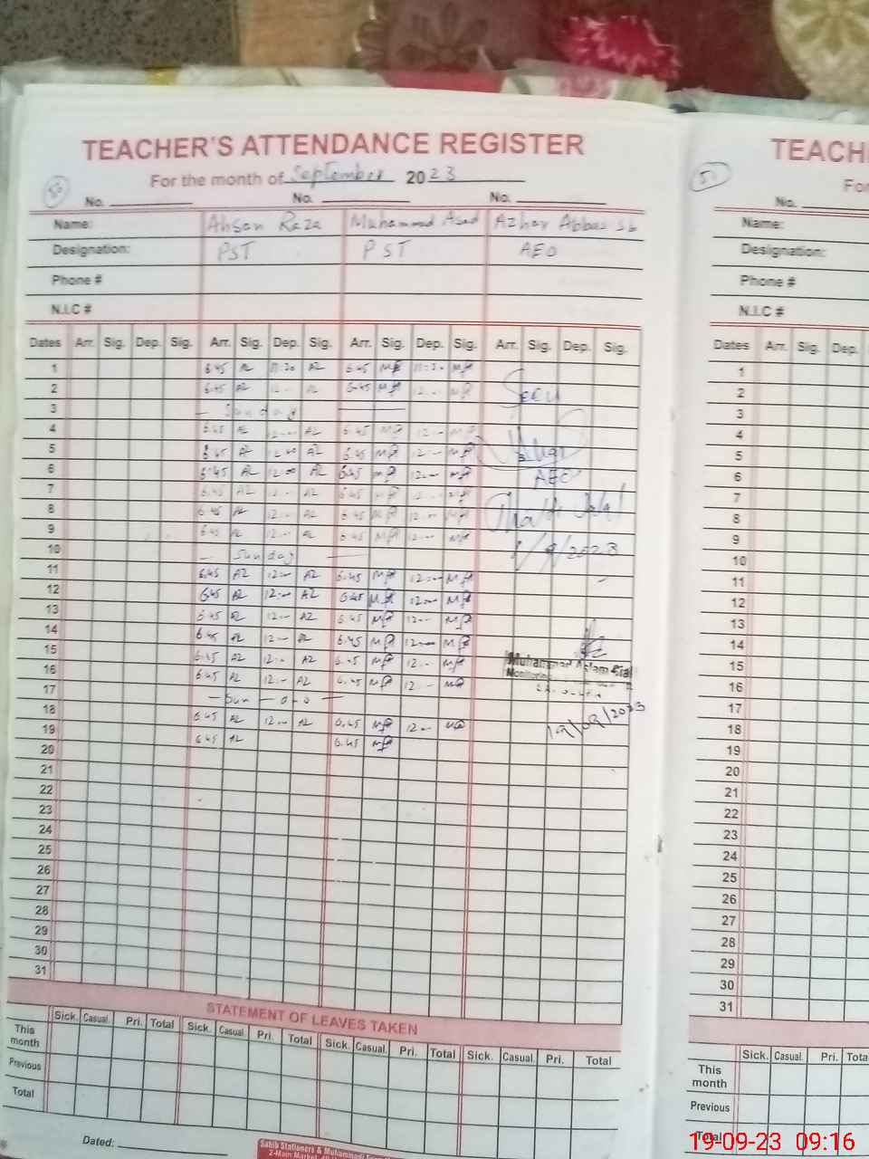 | Name: MU**** AS**** Designation: (School Headmaster's/Headmistress's) PST Phone/Cell Number: 03**** |