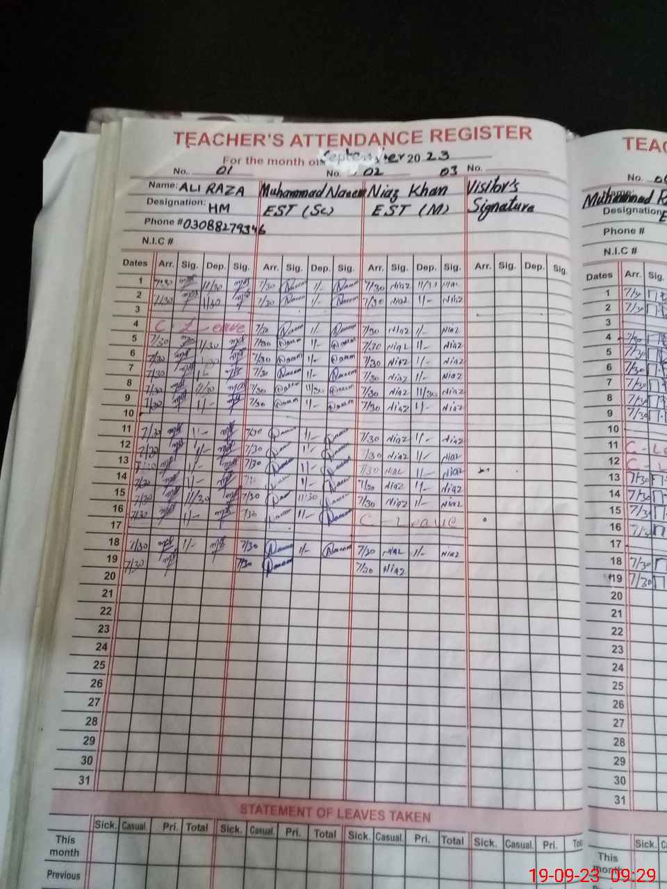 | CNIC | Full Name | Designation | R/C | Absence During Last Calender Month |