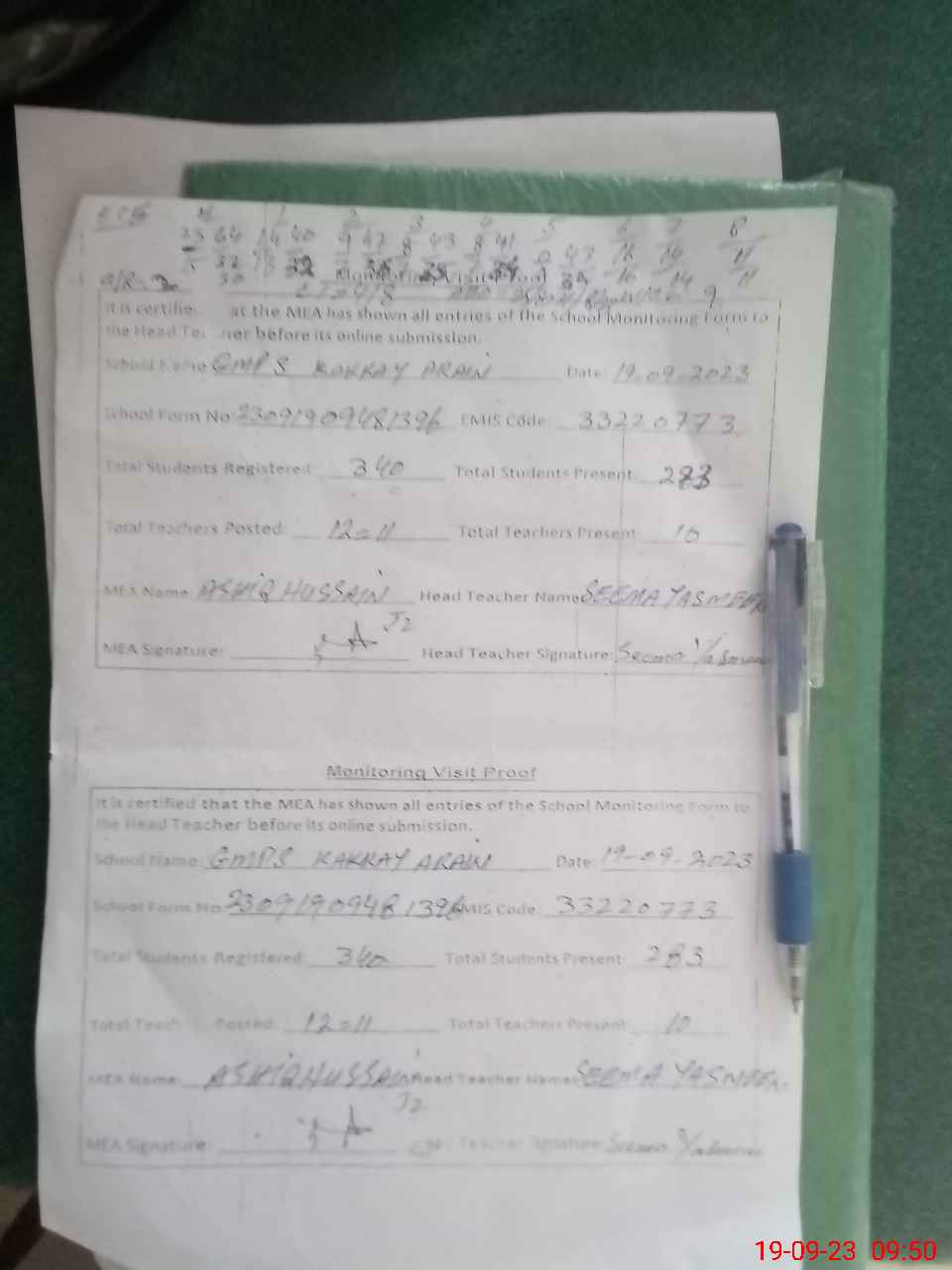 | EMIS Code: 33220773 | Name of School: GMPS KAKKAY ARAIAN | |||