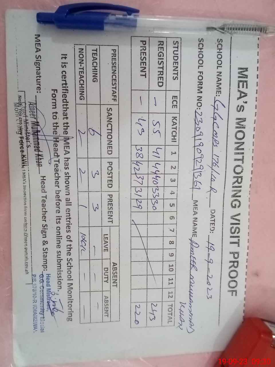 | EMIS Code: 36420371 | Name of School: GGCMES 176/10-R KHANEWAL | |||