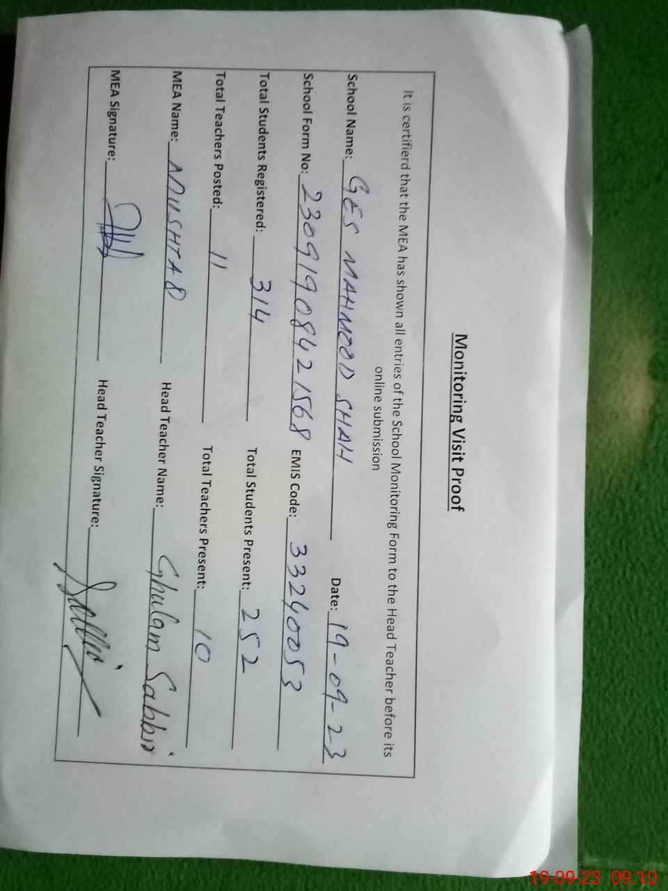 | EMIS Code: 33240053 | Name of School: GES MAHMOOD SHAH | |||