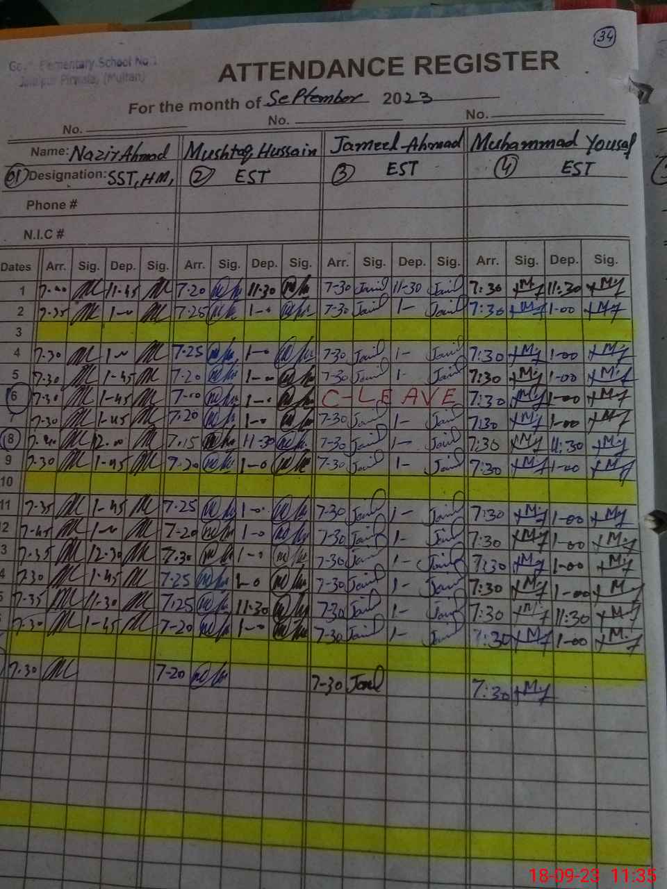 | 36**** | Gh**** Na**** Hu**** | 1 | 2 | 0 | 5 | 0 | 0 | 0 | 0 | 0 | 2 | Absent (Un-Authorized) | |