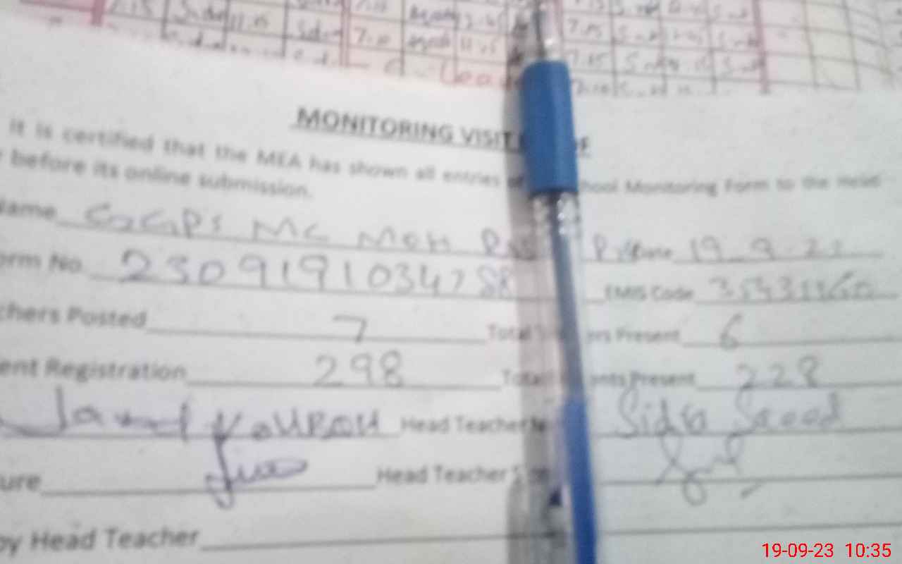 | Attendance Register | Head Teacher | MEA with School | Visit Proof |