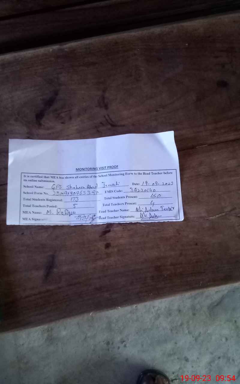 | EMIS Code: 38220140 | Name of School: GPS SHAHEEN ABAD | |||