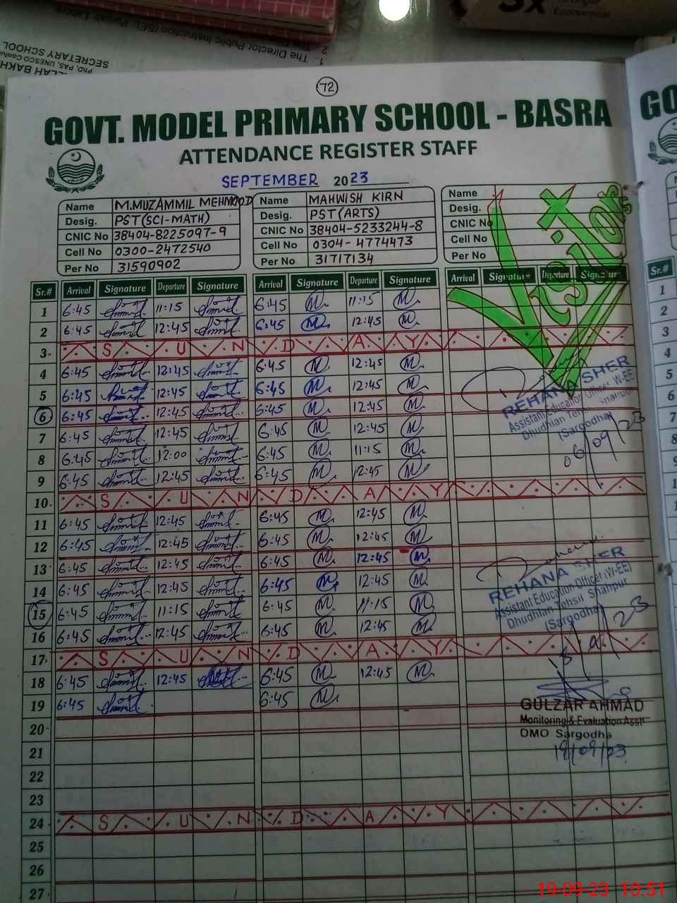 | Name: MU**** MU**** Designation: (School Headmaster's/Headmistress's) PST Phone/Cell Number: 03**** |
