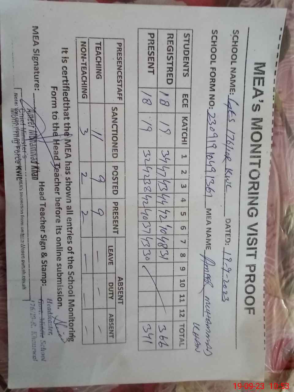 | EMIS Code: 36420068 | Name of School: GES 176/10-R, KHANEWAL | |||