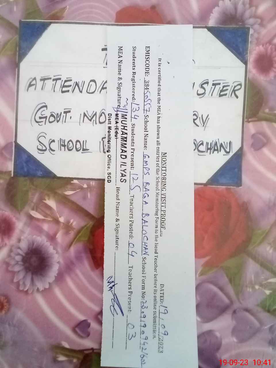 | Attendance Register | Head Teacher | MEA with School | Visit Proof |