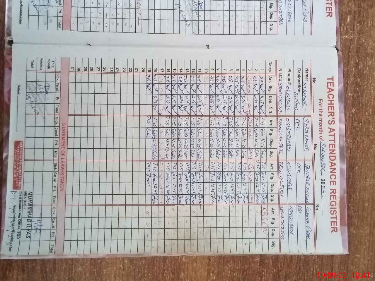 | 38**** | Al**** Ru**** | 1 | 0 | 0 | 11 | 0 | 0 | 0 | 0 | 0 | 0 | Absent (Un-Authorized) | |