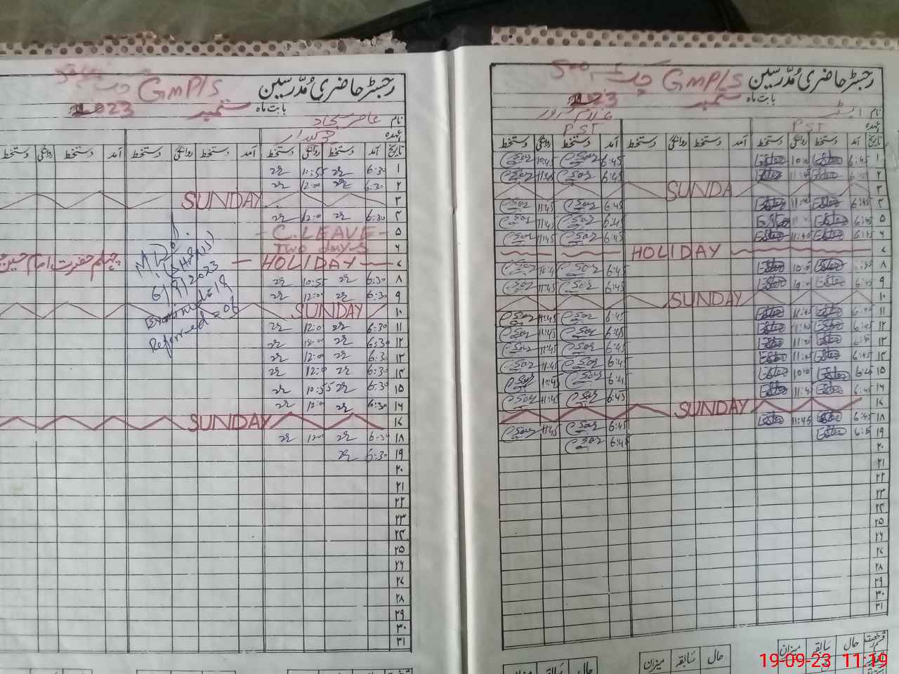 | Leave | Duty | Absent | Maternity | Medical | Ex- Pak |