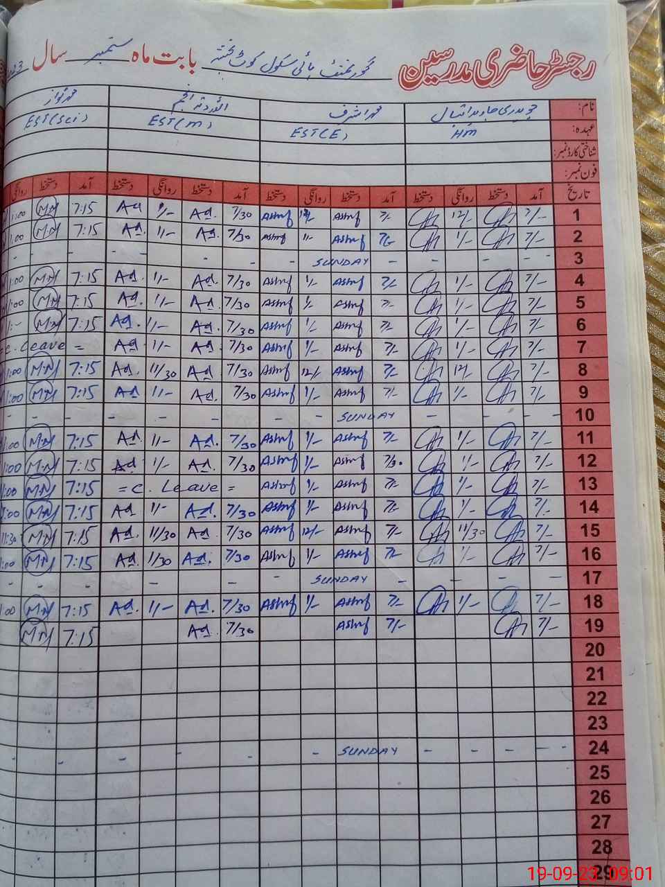 | Name: CH**** IQ**** Designation: (School Headmaster's/Headmistress's) S.S.T.(Arts) Phone/Cell Number: 03**** |