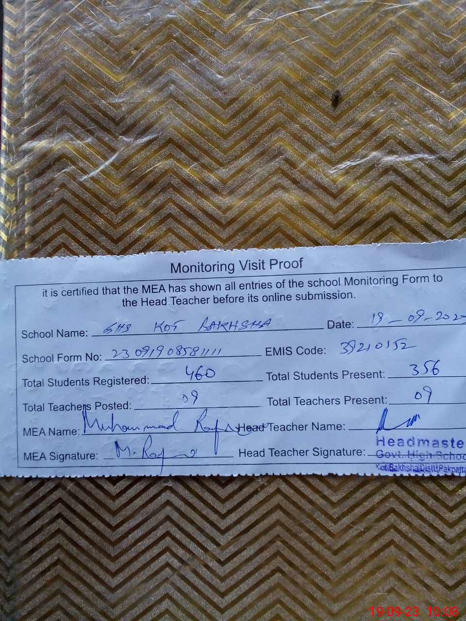 | EMIS Code: 39210152 | Name of School: GHS KOT BAKHSHA | |||