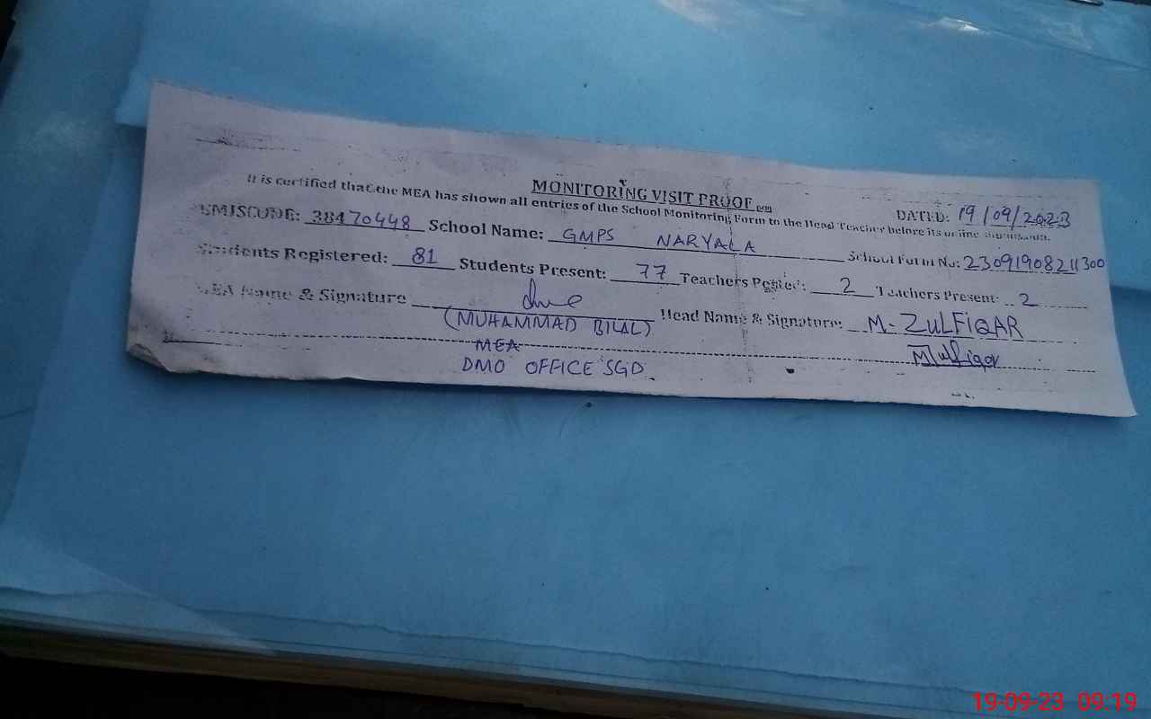 | EMIS Code: 38470448 | Name of School: GMPS NARYALA | |||