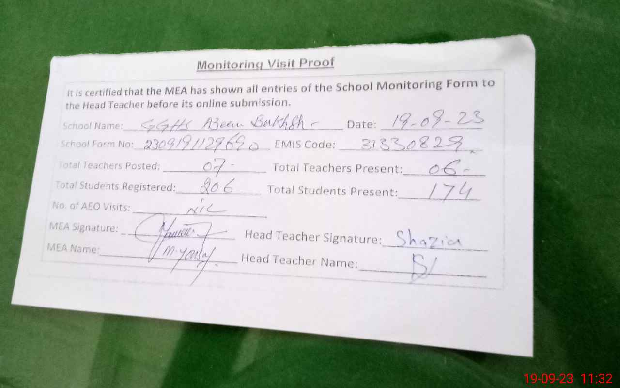 | EMIS Code: 31330829 | Name of School: GGHS AZEEM BUKHSH DHAREEJA | |||