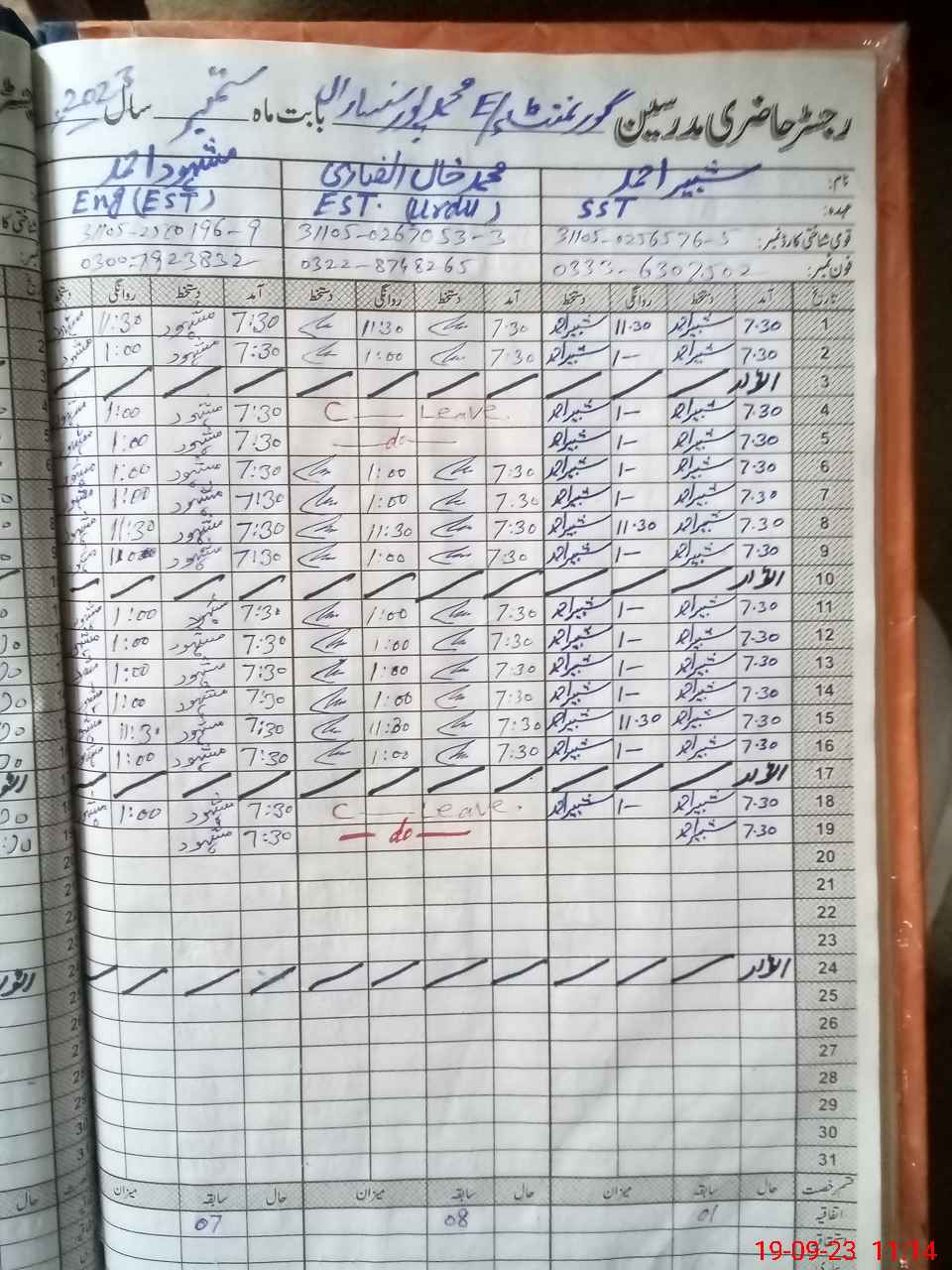 | Name: SH**** AH**** Designation: (School Headmaster's/Headmistress's) SST (G) Phone/Cell Number: 03**** |