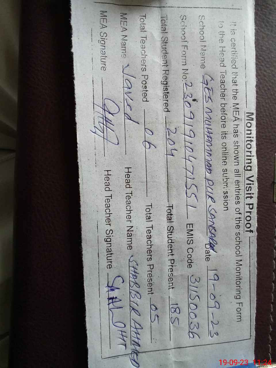 | Certified that this School was Inspected by the Undersigned MEA/DMO Today and the Information Stated Above is as Per Record. | |||||
