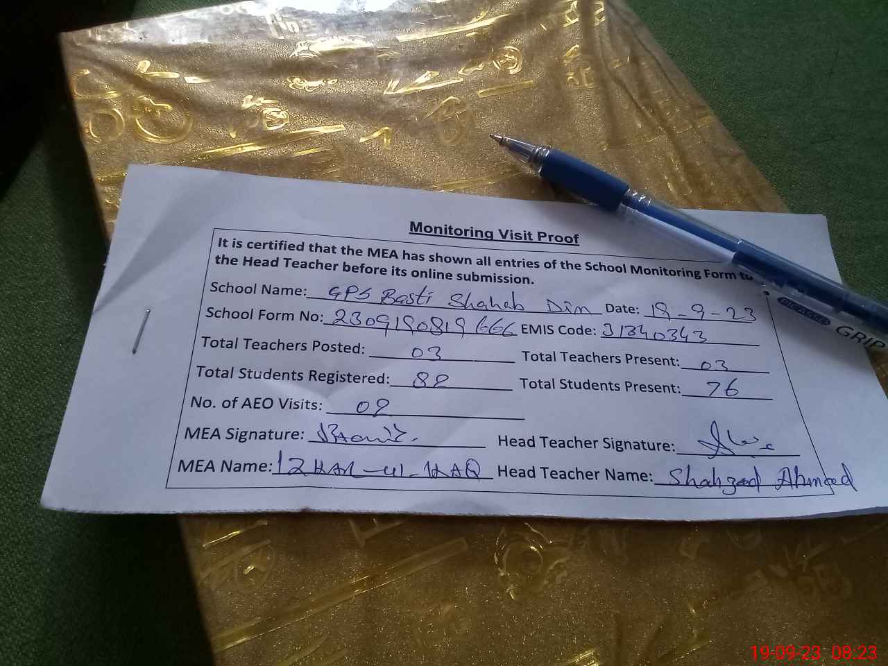 | EMIS Code: 31340343 | Name of School: GPS BASTI SHAHAB DIN | |||