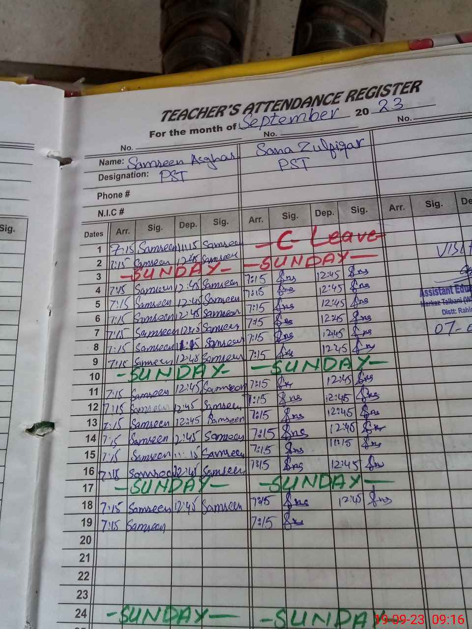 | Name: SA**** AS**** Designation: (School Headmaster's/Headmistress's) PST Phone/Cell Number: 03**** |