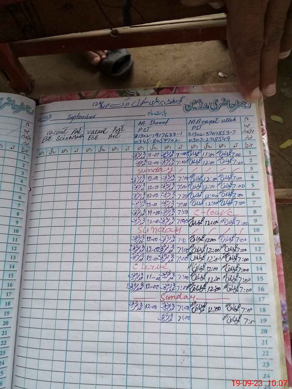 | Name: Mu**** In**** Ul**** Designation: (School Headmaster's/Headmistress's) PST (Sci Math) Phone/Cell Number: 03**** |