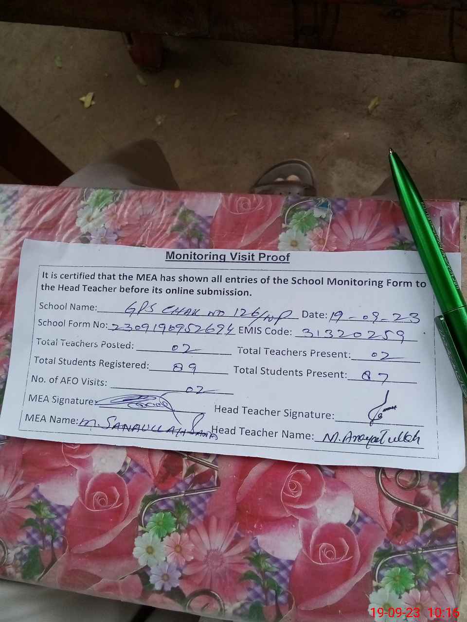 | EMIS Code: 31320259 | Name of School: GPS CHAK 126 NP | |||