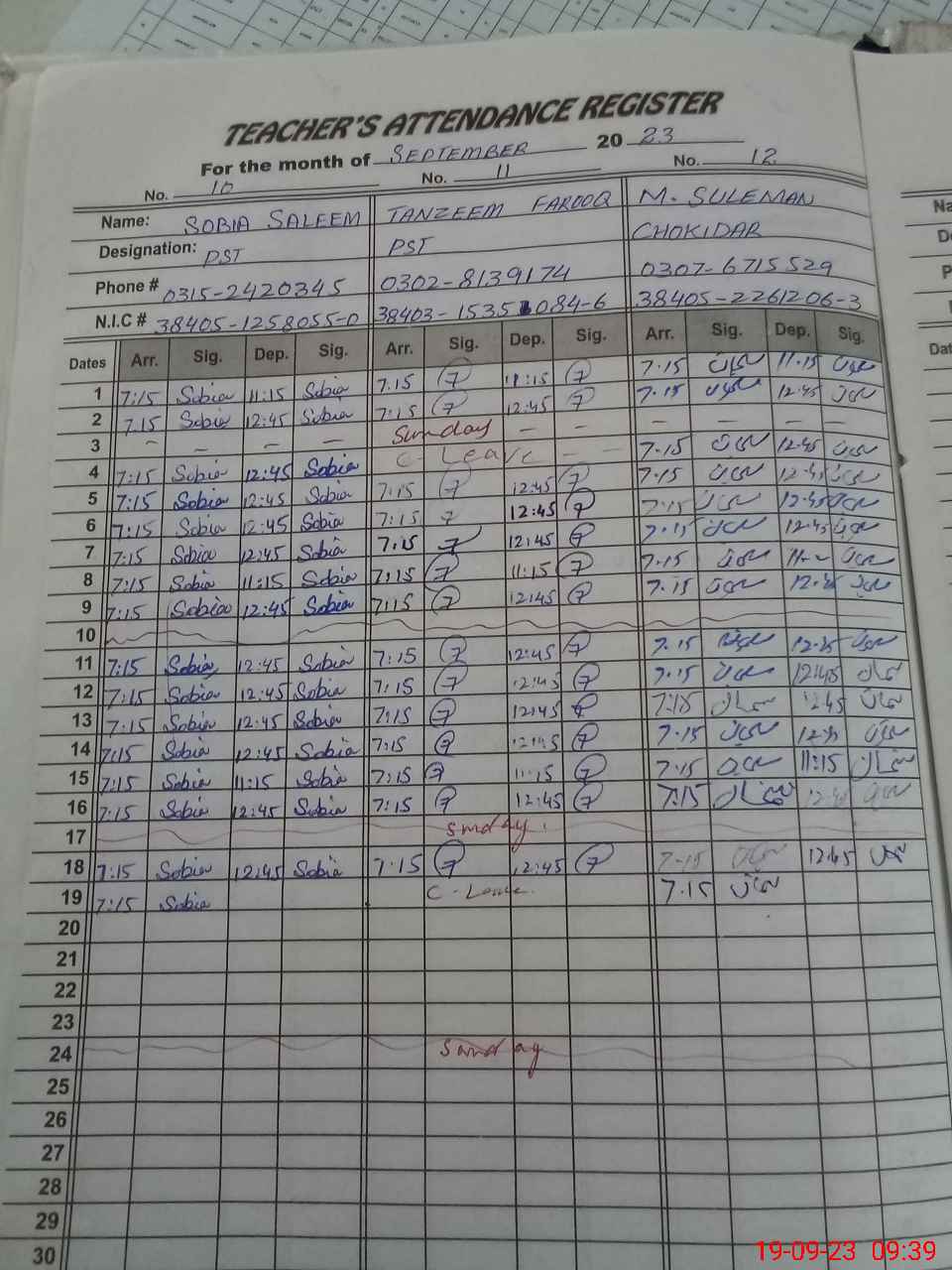 | Name: As**** Sh**** Designation: (School Headmaster's/Headmistress's) SST SCI Phone/Cell Number: 03**** |