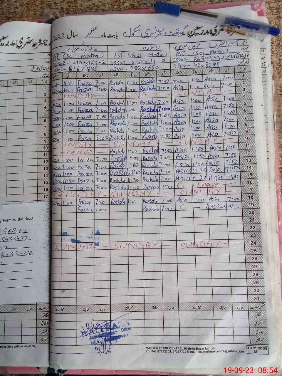 | Name: Ra**** Designation: (School Headmaster's/Headmistress's) PST Phone/Cell Number: 03**** |