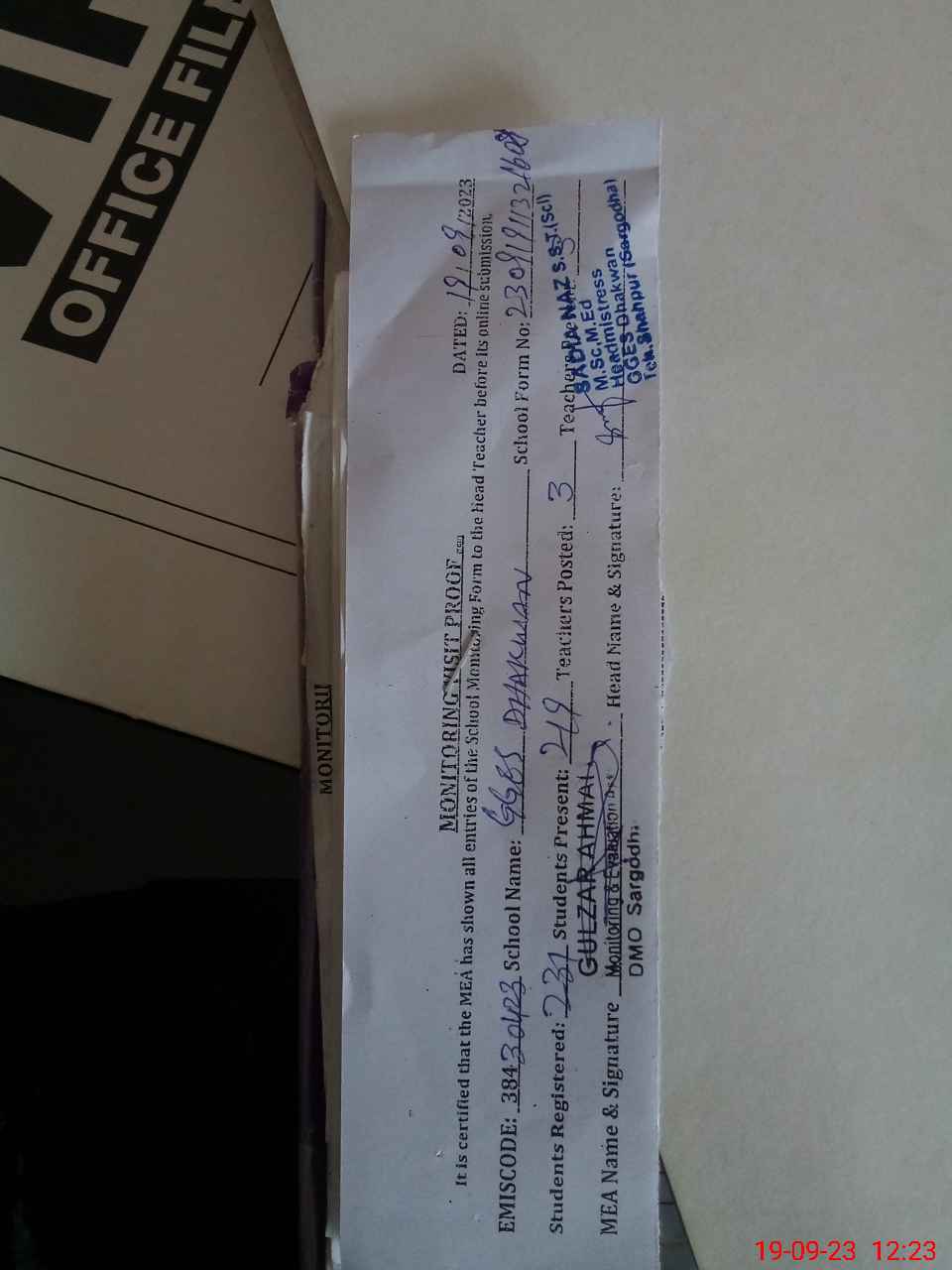 | Certified that this School was Inspected by the Undersigned MEA/DMO Today and the Information Stated Above is as Per Record. | |||||