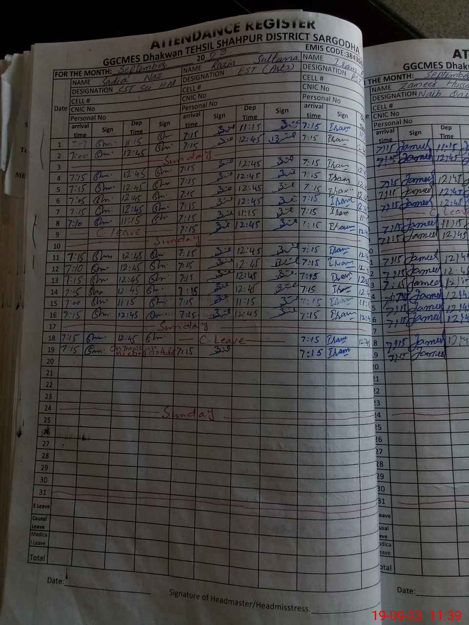 | CNIC | Full Name | Designation | R/C | Absence During Last Calender Month |