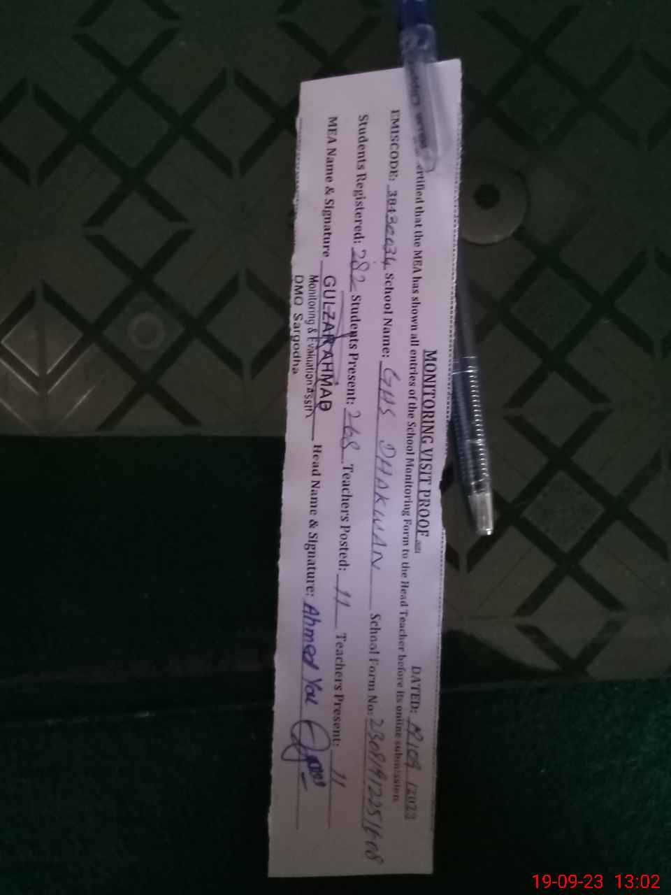 | EMIS Code: 38430034 | Name of School: GHS DHAKWAN | |||