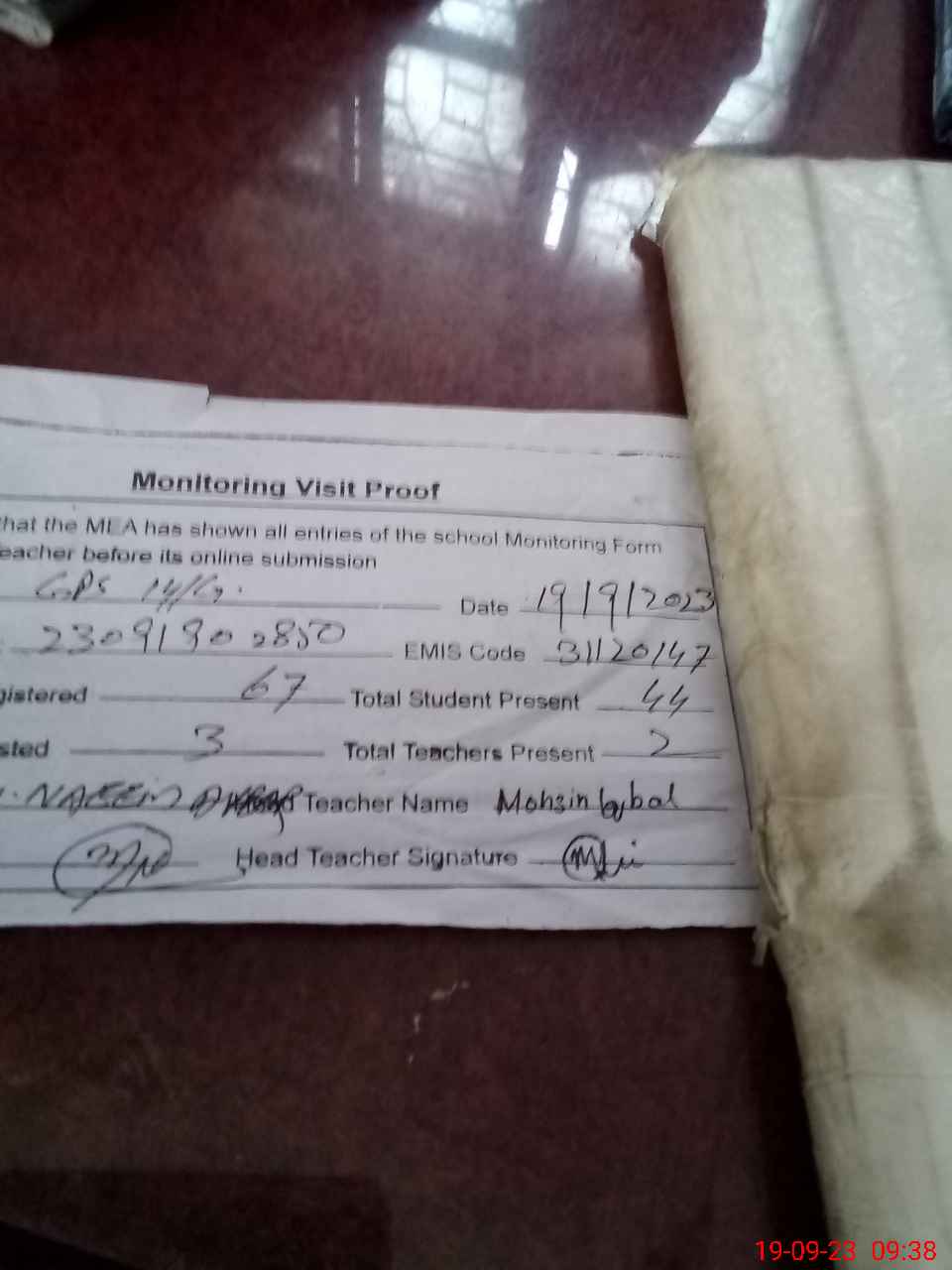 | Attendance Register | Head Teacher | MEA with School | Visit Proof |