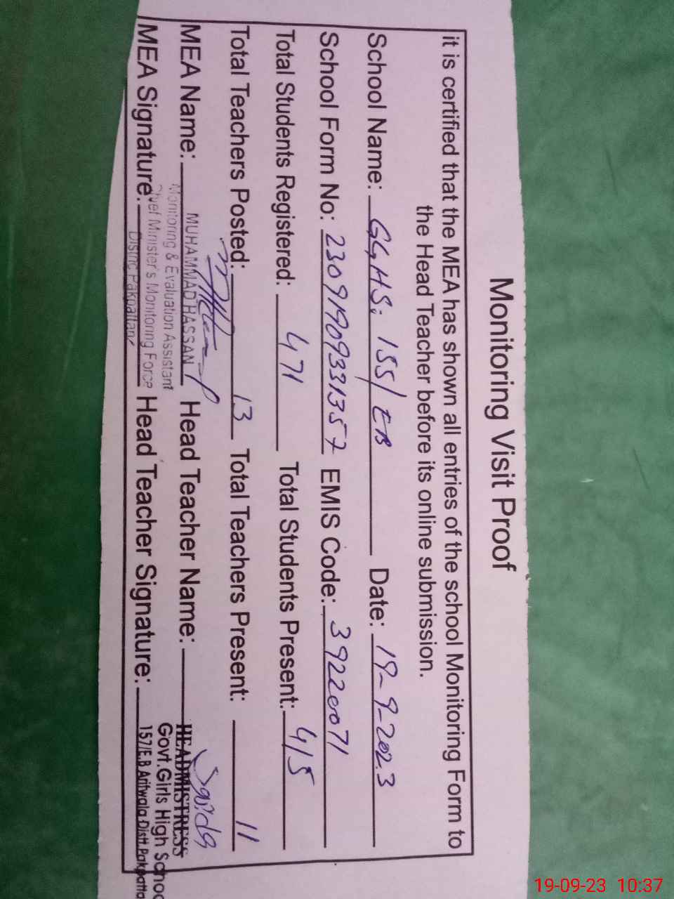 | EMIS Code: 39220071 | Name of School: GGHS CHAK NO. 157 EB | |||
