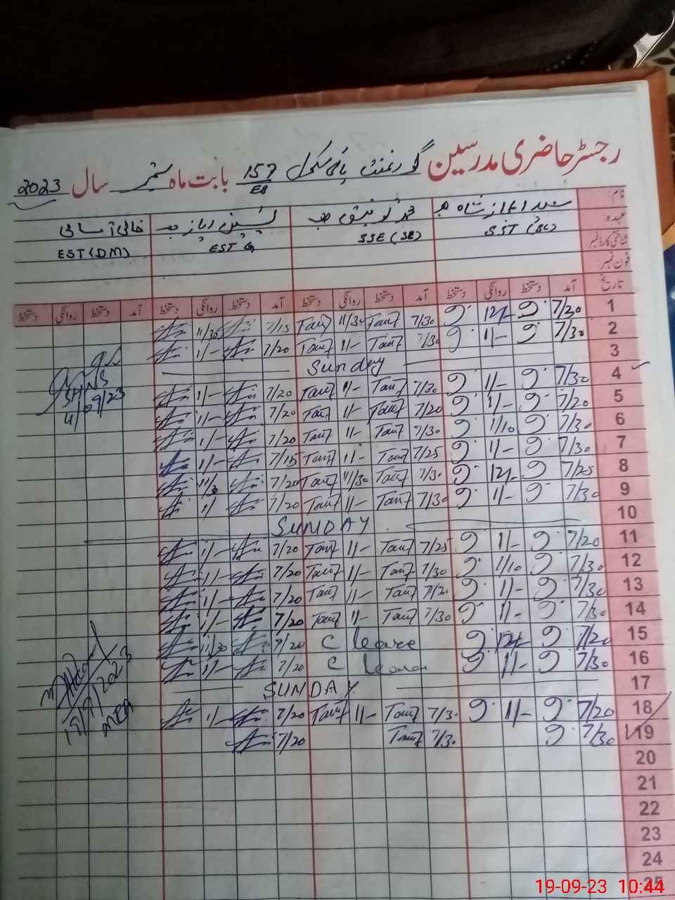 | CNIC | Full Name | Designation | R/C | Absence During Last Calender Month |