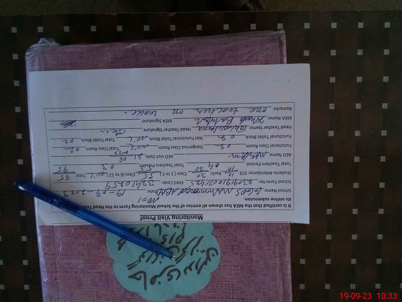 | Certified that this School was Inspected by the Undersigned MEA/DMO Today and the Information Stated Above is as Per Record. | |||||