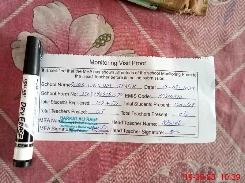 | EMIS Code: 39210310 | Name of School: GGPS WAN DAL SINGH | |||