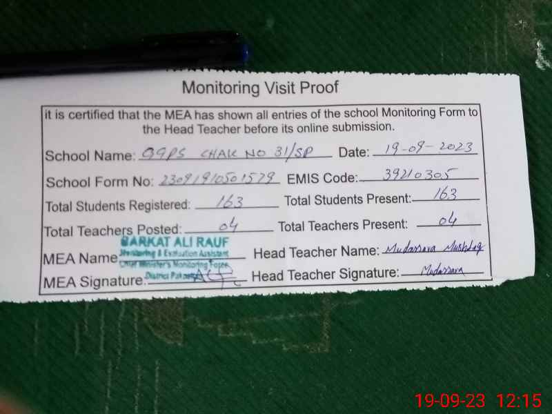 | EMIS Code: 39210305 | Name of School: GGPS CHAK NO.31 SP | |||